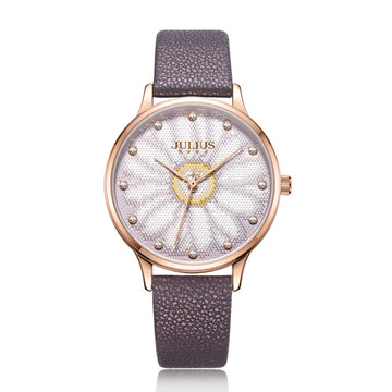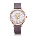 Women's Analog Watch with Sunflower Design with Mauve Leather Strap - Gift Box Included